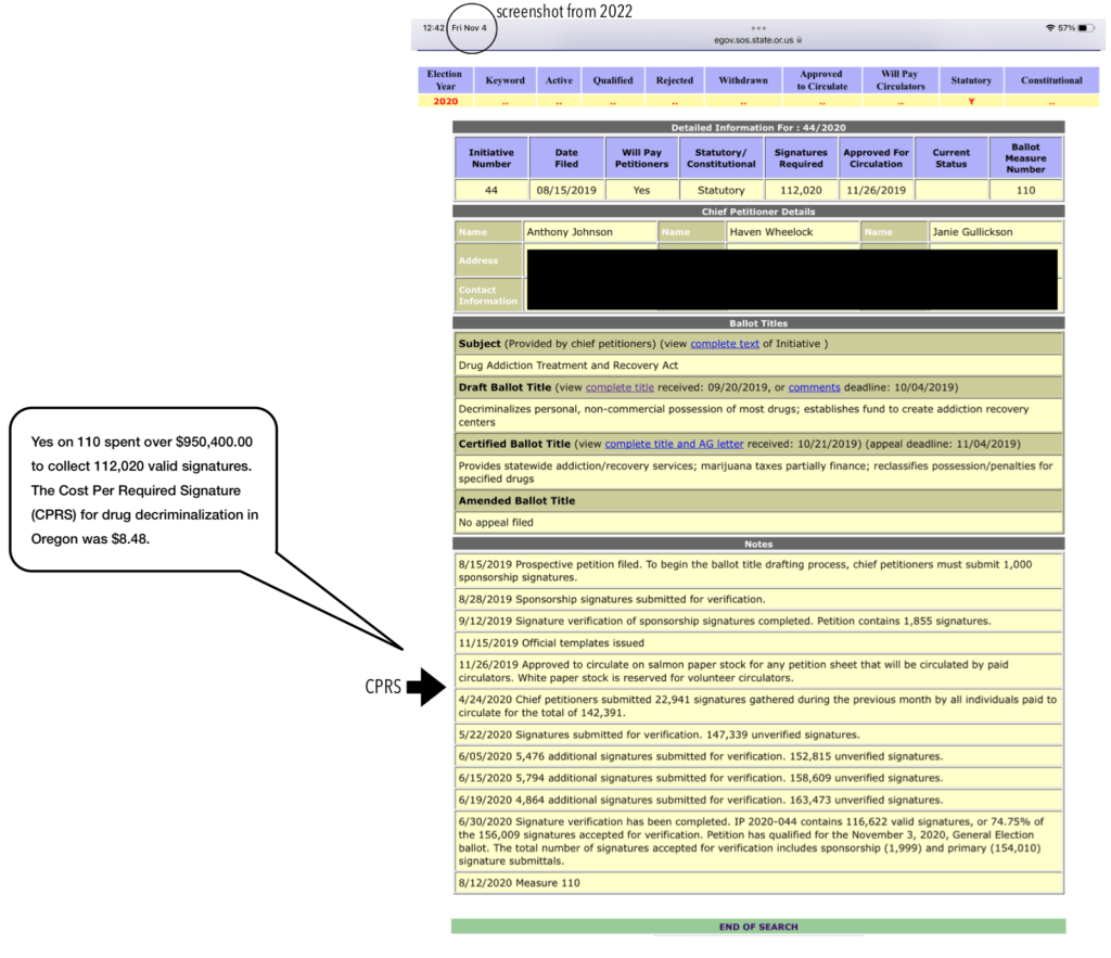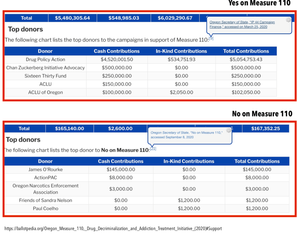 For starters, Oregon has a low-threshold ballot measure system (see more below). And money. A LOT OF MONEY. Measure 110 backers spent over $6 million.