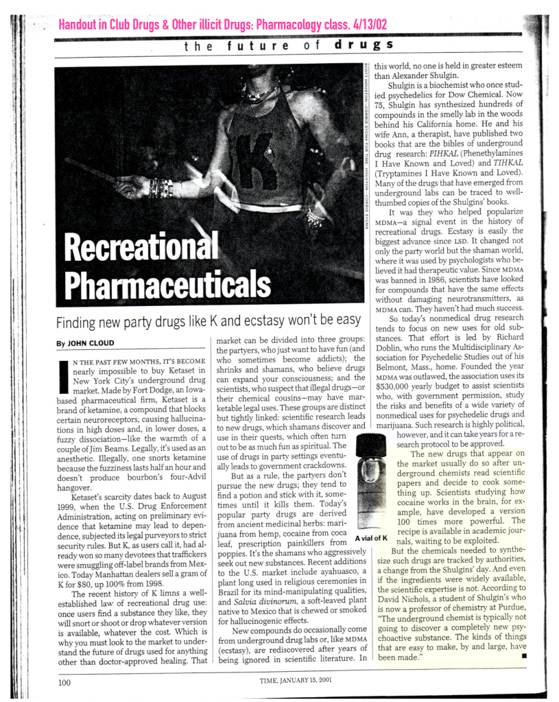 In 2001, experts thought ECSTASY was the end of new drug discoveries. authorities stopped tracking the chemicals required to fuel drug labs and drug recipes became more widely available as the internet created a global marketplace.