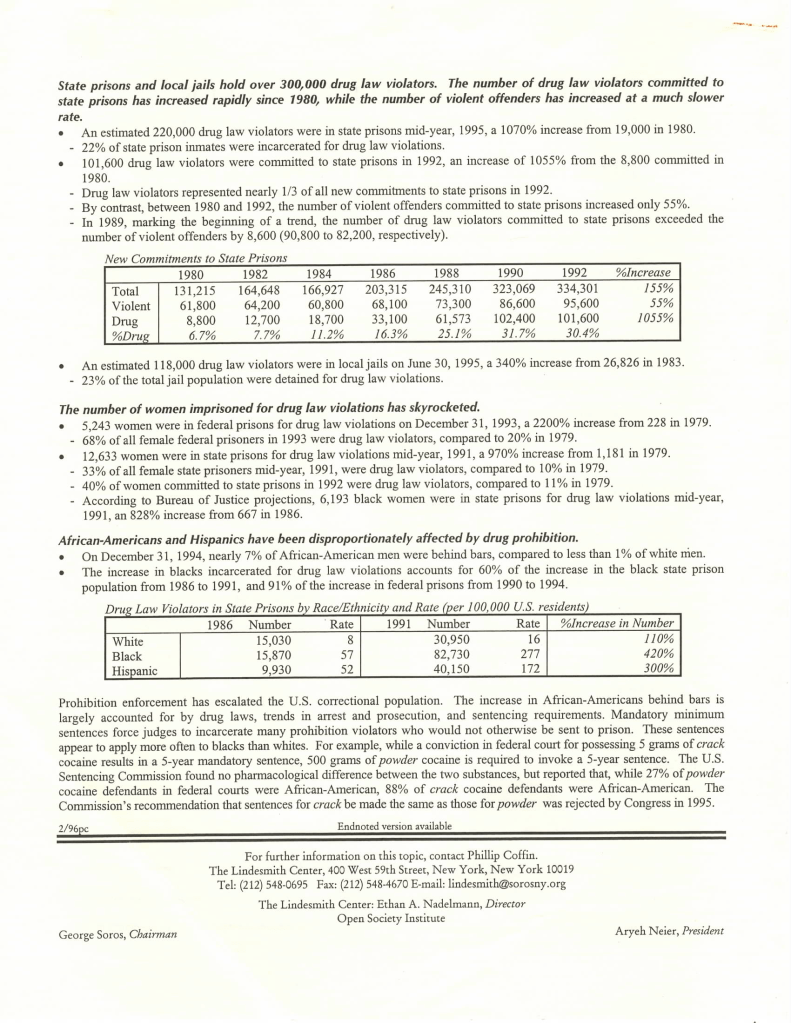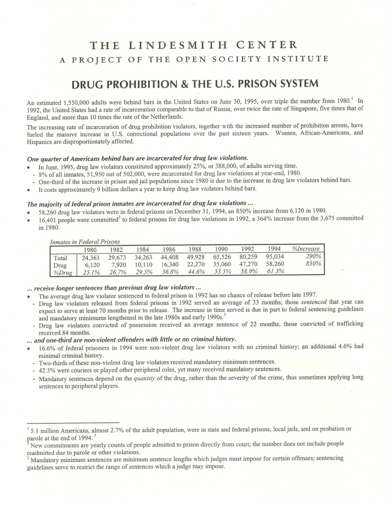 Compare this to the data compiled below by the Lindesmith Center in 1996.
